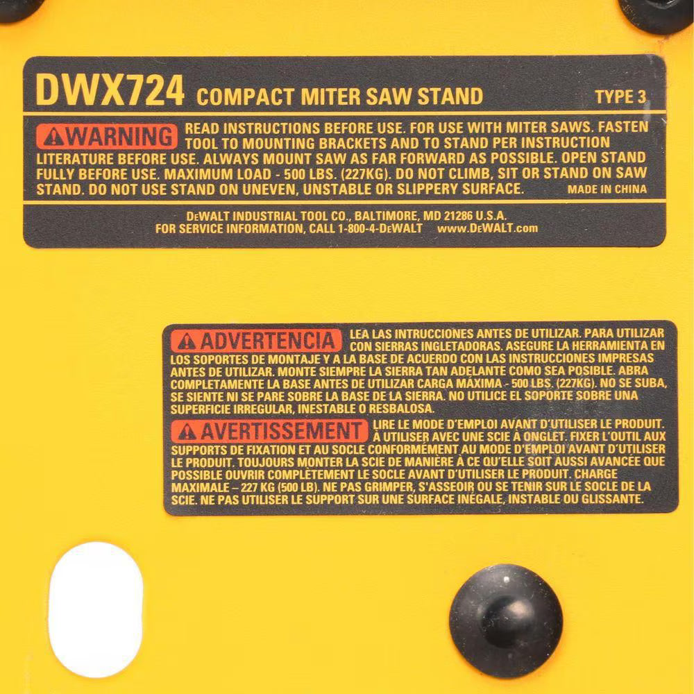 DEWALT DWX724 29.8 lbs. Compact Miter Saw Stand with 500 lbs. Capacity and 10 ft. Outfeed Support