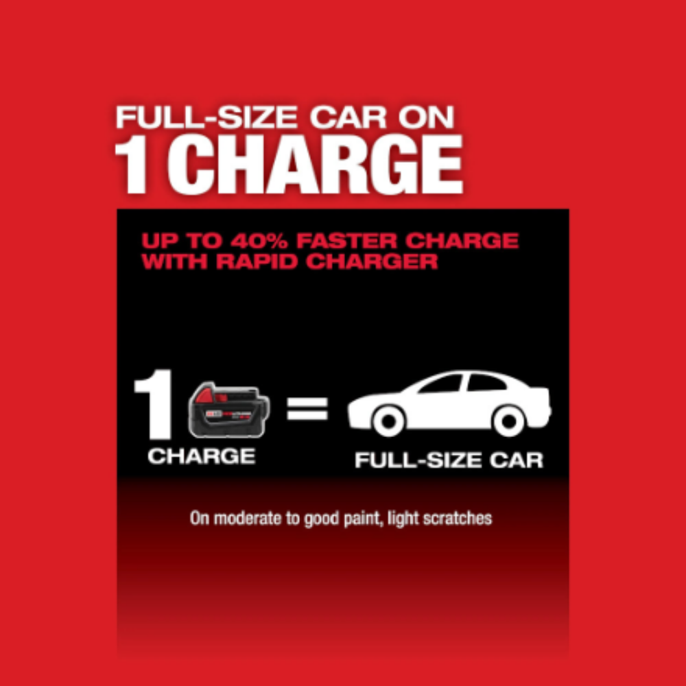 Weighing over 1 lb. less than traditional corded polishers, this tool minimizes user fatigue while its variable speed dial (0–2,200 RPM) and trigger give you total control for precise finishing. With an M18™ XC 5.0 battery, it can polish a full-size car on a single charge under moderate-to-good paint conditions. A rubber overmold front housing protects vehicle surfaces from scratches, while the removable dust cover shields the motor and electronics from debris and fibers.