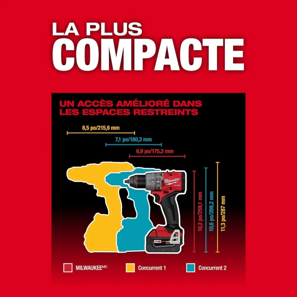 The Milwaukee M18 FUEL 1/2-inch Hammer Drill Driver is engineered for professionals seeking maximum power and precision. Recognized as the industry’s most powerful hammer drill, it drills large holes in dense materials at high speed while maintaining compact, maneuverable design for tight spaces. Measuring just 6.9 inches in length, this drill provides unmatched access and control for demanding jobs.