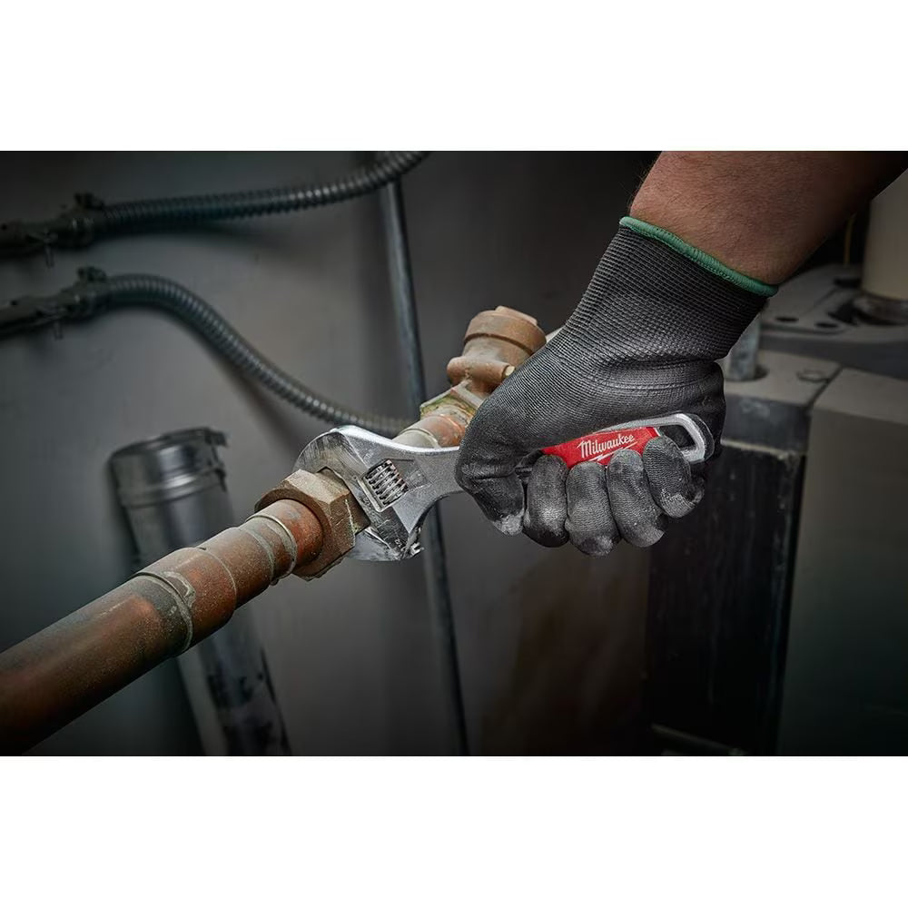 The Milwaukee 48-22-7400 Adjustable Wrench Set includes a 6-inch and a 10-inch wrench, engineered for maximum performance and professional-grade productivity. Each wrench features a proprietary adjustment screw that ensures the jaws stay securely in place during use. The ergonomic handles are designed for comfort, preventing strain on your palms, while the chrome-plated finish provides superior rust protection for long-lasting durability.