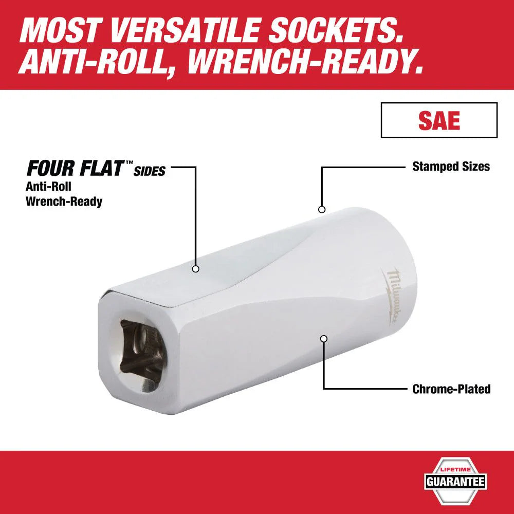 - FOUR FLAT™ Socket Sides prevent rolling and are wrench-ready for added versatility