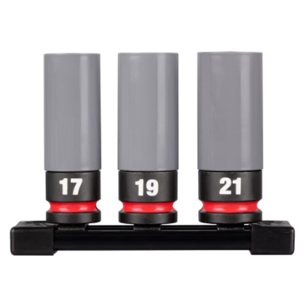 Upgrade your tire-changing toolkit with the Milwaukee SHOCKWAVE™ Impact Duty 1/2-Inch Drive 6-Point Lug Nut Wheel Socket Set, purpose-built to safeguard wheels and lug nuts during installation and removal. Featuring Milwaukee’s exclusive ARMOR-GUARD™ sleeve, these sockets deliver unmatched durability and non-marring protection, preventing scratches, cracks, or chips on rims while ensuring a secure fit every time.