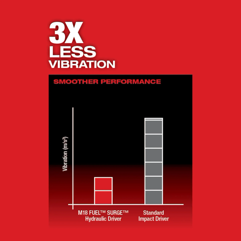 The MILWAUKEE® M18 FUEL™ SURGE™ Cordless Brushless 1/4" Hex Hydraulic Impact Driver is engineered to deliver the quietest cordless fastening performance in the industry. Featuring Milwaukee’s FLUID-DRIVE™ Hydraulic Powertrain, this innovative tool operates up to 50% quieter, produces 3X less vibration, and drives screws faster than standard impact drivers, making it ideal for construction, remodeling, and maintenance professionals.