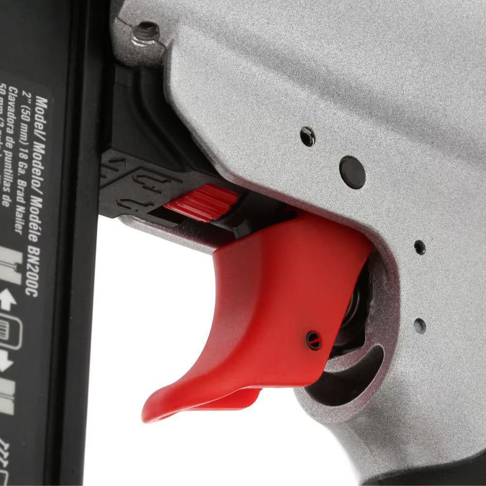 The Porter-Cable BN200C 18-Gauge Brad Nailer is built for reliability, precision, and ease of use. Designed to drive 18-gauge brad nails from 5/8 inch to 2 inches, this tool is ideal for trim work, cabinetry, furniture assembly, and other finishing projects. Its maintenance-free motor ensures long-lasting performance and prevents oil stains on your work surface.
